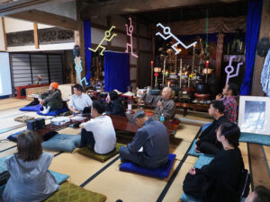 「金蔵学校」では、フキと豆腐と野菜の煮しめや、小豆と豆腐(大豆)の「いとこ汁」など、寺の「お講」の精進料理を村おこしに活用できないか検討している。