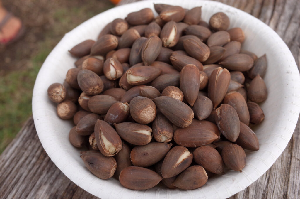 落葉樹のドングリ(クヌギやトチなど)は入念にあく抜きをしなければならないが、シイはナマでもアクはない。実が小さくて殻をわるのがめんどうだった記憶があるが、なぜか真脇のシイの実は大きくて食べやすい。