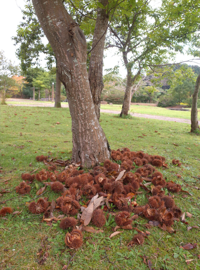 秋は収穫の季節である。真脇遺跡でも、栗やシイの実があちこちに落ちている。
