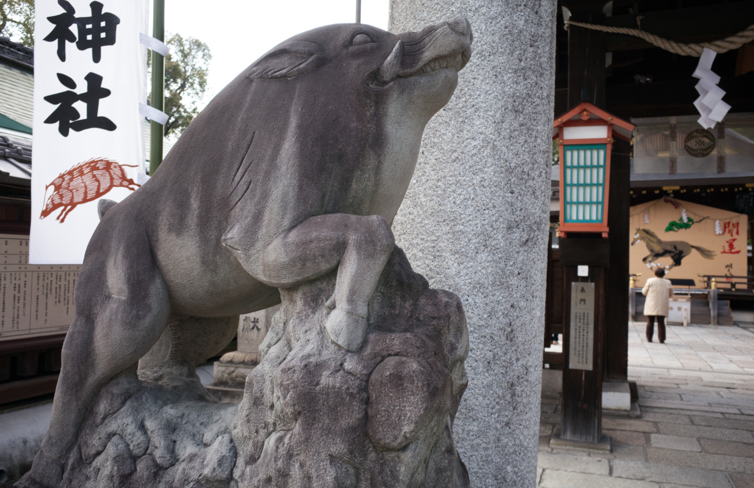 狛猪のいる神社